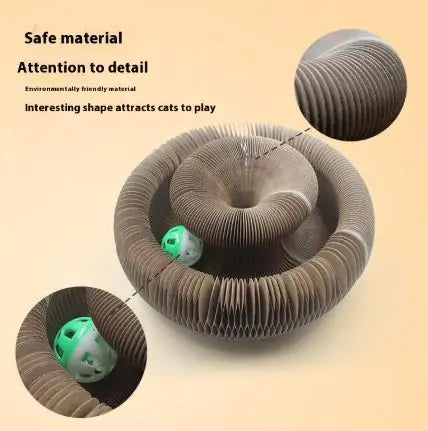 Made from high-quality, thick corrugated cardboard, FlexiPurr™ offers the perfect texture cats love. It gently files claws, reduces stress, and helps redirect scratching behavior away from furniture. Unlike ordinary scratch pads, its flexible build allows you to use it flat, curved, or shaped into a round or box-style form—keeping your cat engaged and curious every day.